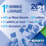 Η Σοφία, η Χρύσα, η Άννα, και πολλοί ακόμα από τους μαθητές μας διακρίθηκαν με τις φετινές τους επιδόσεις στις Πανελλήνιες Εξετάσεις. Όλοι οι μαθητές μας, μας έκαναν υπερήφανους με την προσπάθεια που κατέβαλαν σε μια δύσκολη και ιδιαίτερη χρονιά λόγω των συνθηκών διδασκαλίας με τηλεκπαίδευση! Τους ευχόμαστε με τη σειρά μας να έχουν πάντα επιτυχίες και χαμόγελα στη ζωή τους. Αυτή τους η επιτυχία στις Πανελλήνιες Εξετάσεις να αποτελέσει την αρχή για ένα λαμπρό μέλλον, όπως συμβαίνει άλλωστε στους χιλιάδες μαθητές μας από το 1980!