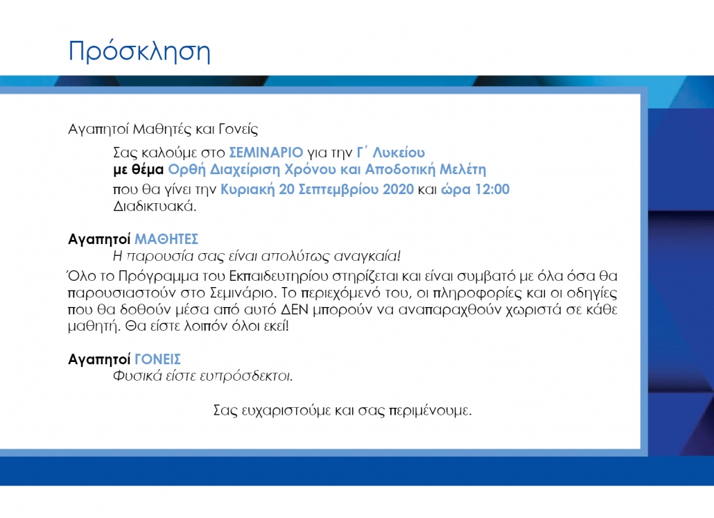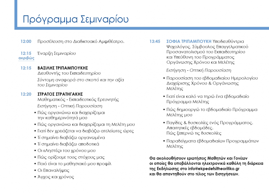 - λαμβάνουν Ατομικό Πρόγραμμα Μελέτης και διαχείρισης χρόνου,