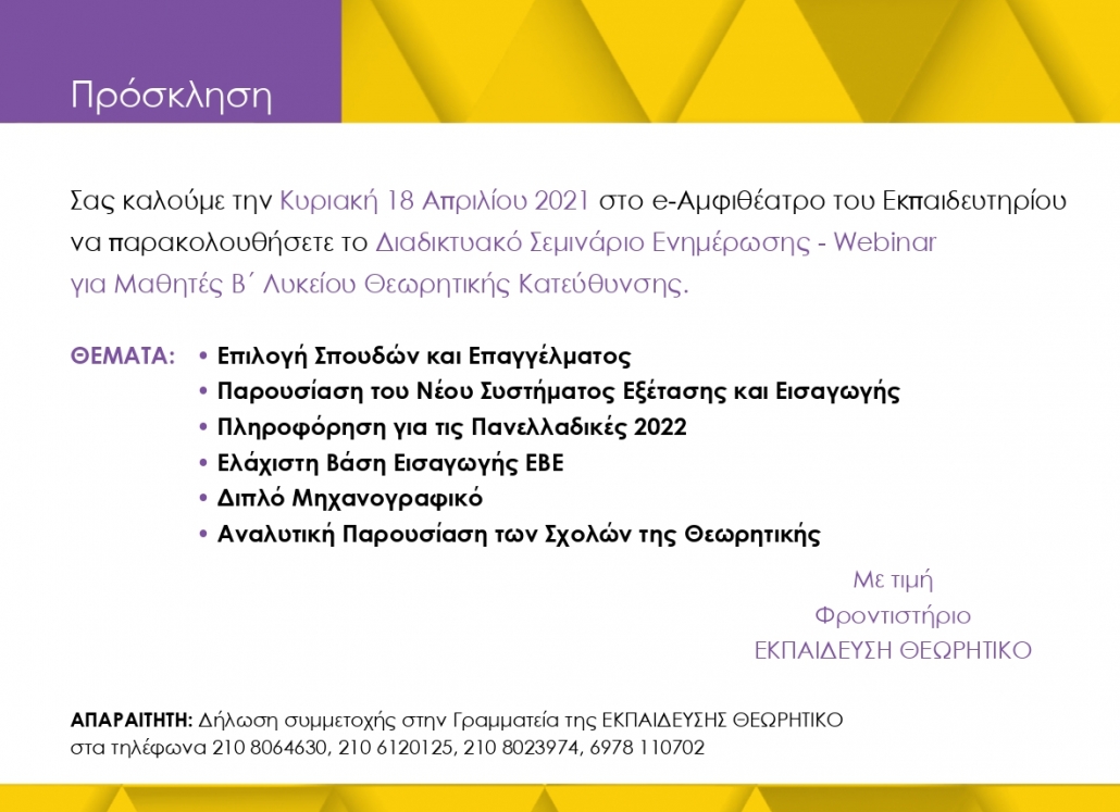Θερινά μαθήματα προετοιμασίας για Β΄ και Γ΄ Λυκείου – ΕΝΑΡΞΗ ΘΕΡΙΝΩΝ ΜΑΘΗΜΑΤΩΝ 2021