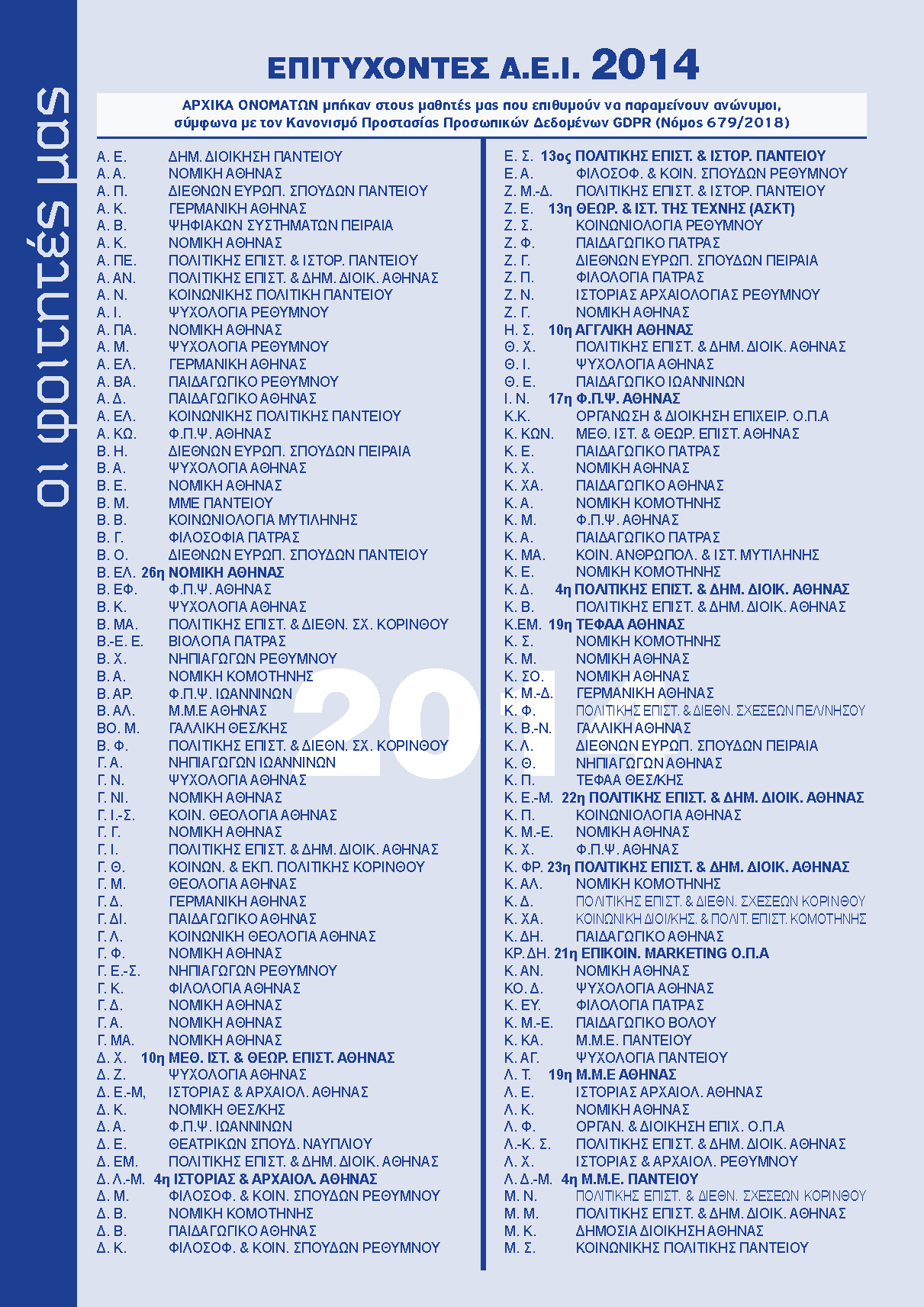 Είστε εδώ: Αρχική1 / ΕΠΙΤΥΧΟΝΤΕΣ2 / Επιτυχόντες 2014